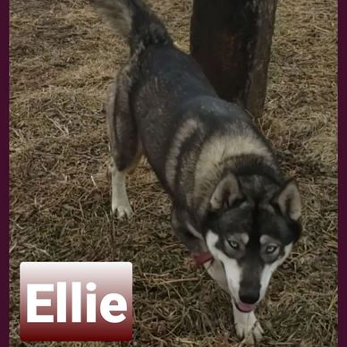 "Ellie" is a strikingly gorgeous agouti Siberian Husky with two piercing blue eyes. She is a current Dam for WildSide Siberians.