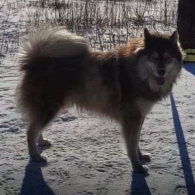 "Odin" is a very striking Red & White Wooley Siberian Husky (possibly carries agouti). He is a loving & loyal goofball with an independent nature. He is a future Sire for WildSide Siberians.