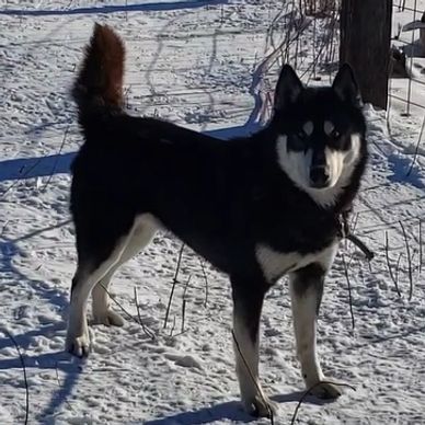 Hades is a striking non-traditional black Siberian Husky. Although he looks intimidating, he is a loving, happy, high energy goofball who will talk your ear off. He is a future sire for WildSide Siberians.