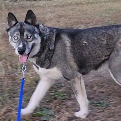 "Iris" is a very "wolf" like agouti Siberian Husky with two blue eyes. She is a future Dam for WildSide Siberians.